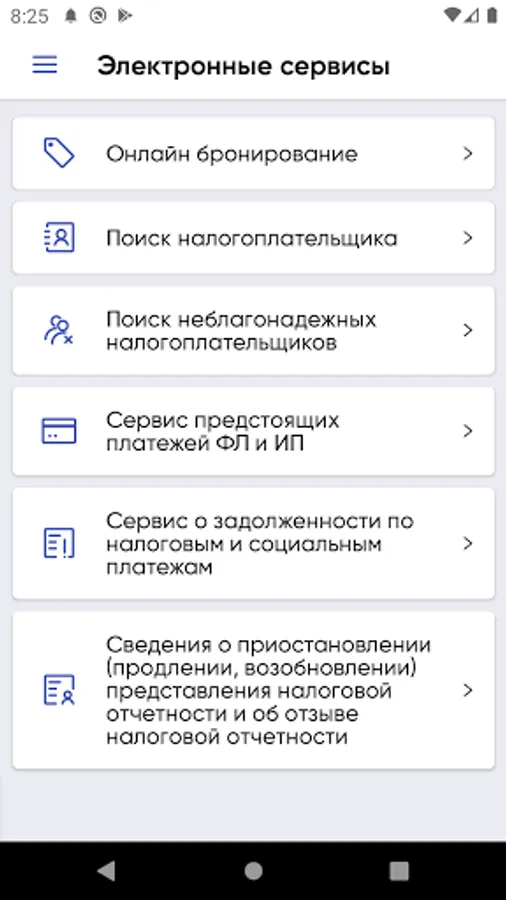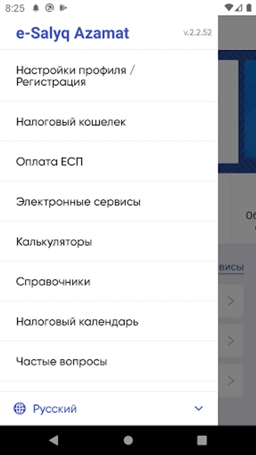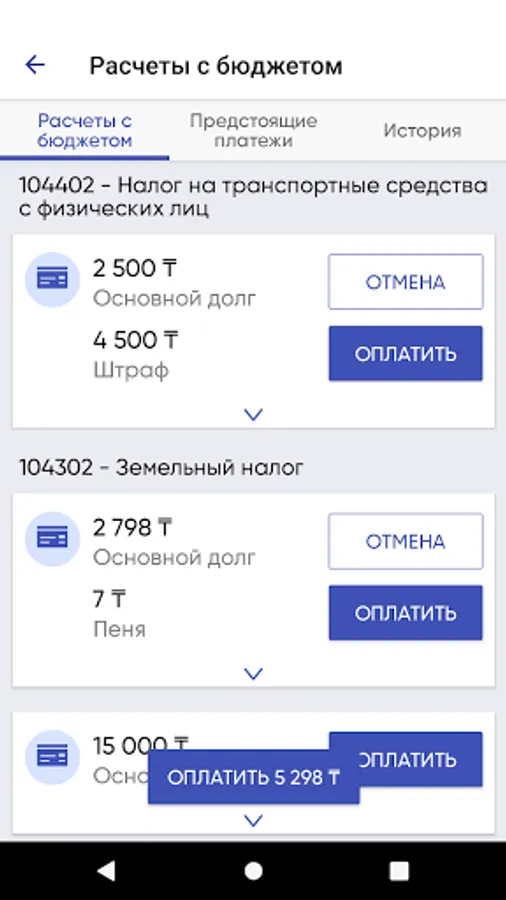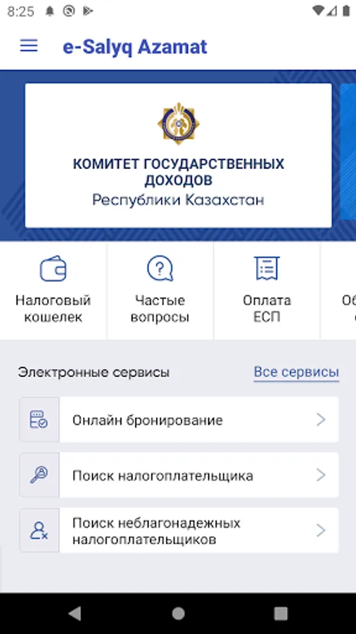 The e-Salyq Azamat mobile application provides access to the following information and services of the CGD MF RK: