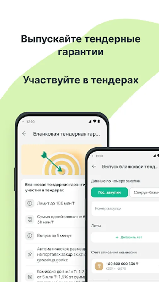 - issue blank tender guarantees in a couple of clicks without going to the branch