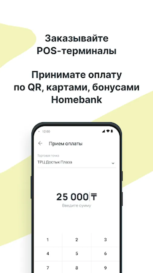 Connect directly in the app and accept payments from the Halyk app and Onlinebank for your goods/services via Halyk QR, or Halyk POS and Smart POS terminals
