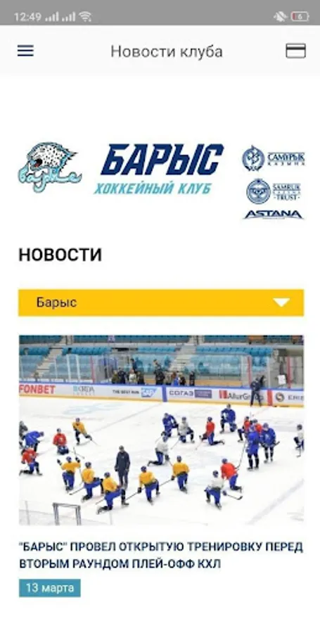 The mobile application of HC "Barys" is available to all fans of the club!