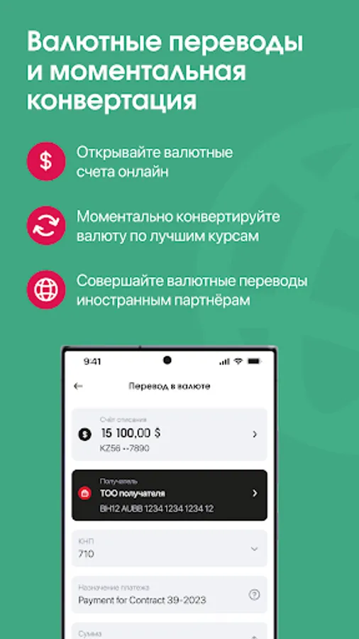 • Register foreign exchange contracts and transfer large amounts to foreign partners