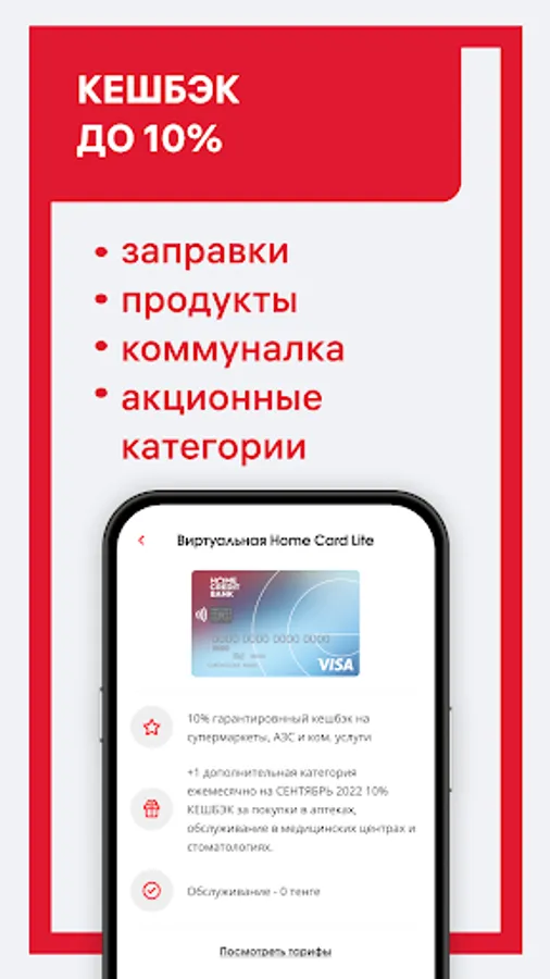 Get 10% cashback for payments at supermarkets, gas stations, and utility services in the app. You can order a card with home delivery or open a virtual card in the app.
