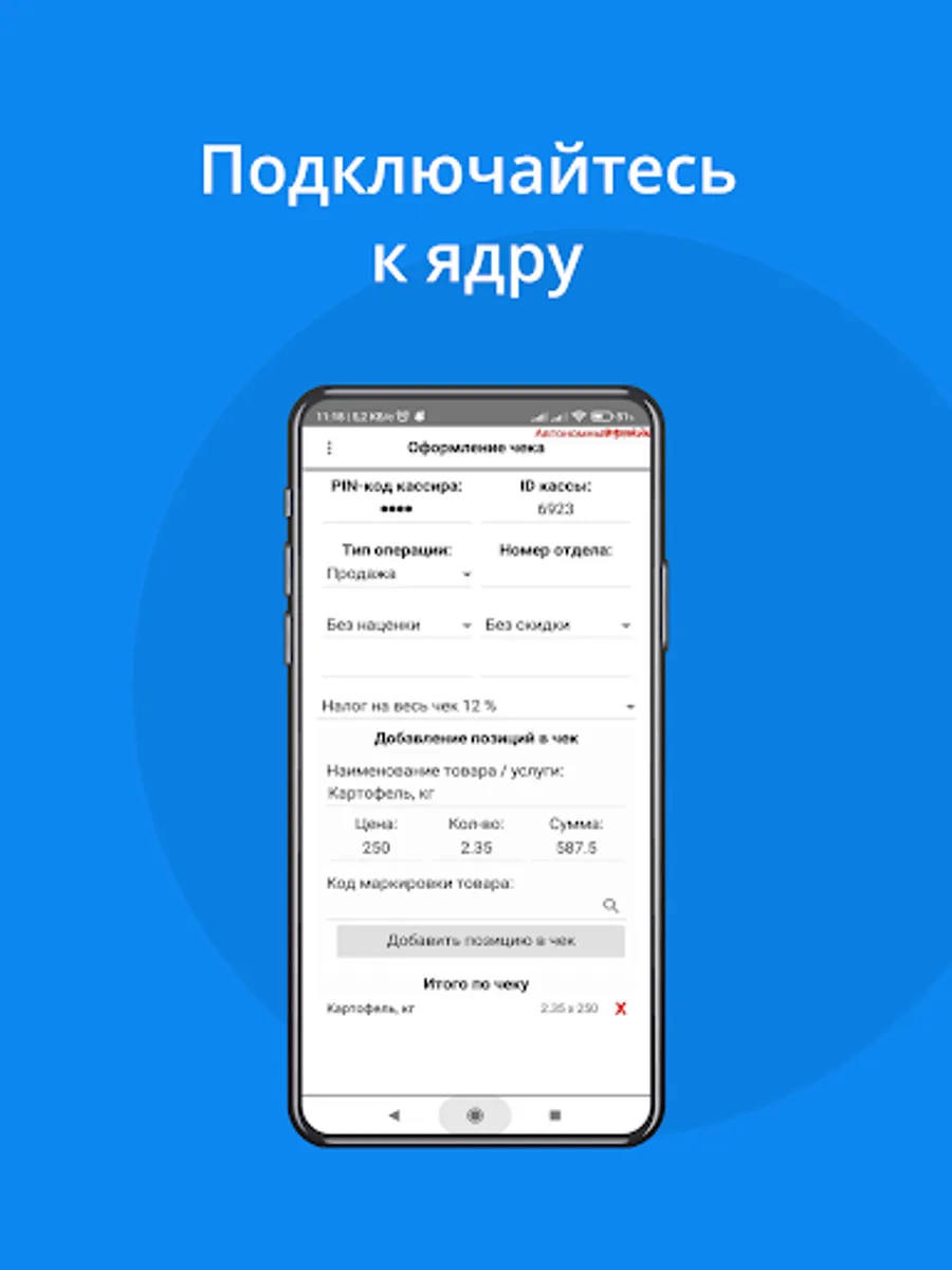 The mobile cash core is intended for registering and controlling cash transactions, accounting for funds, transferring data on operations performed to the server of the Fiscal Data Operator. For full-fledged work, you need to install the ismet.kz mobile application and register a company