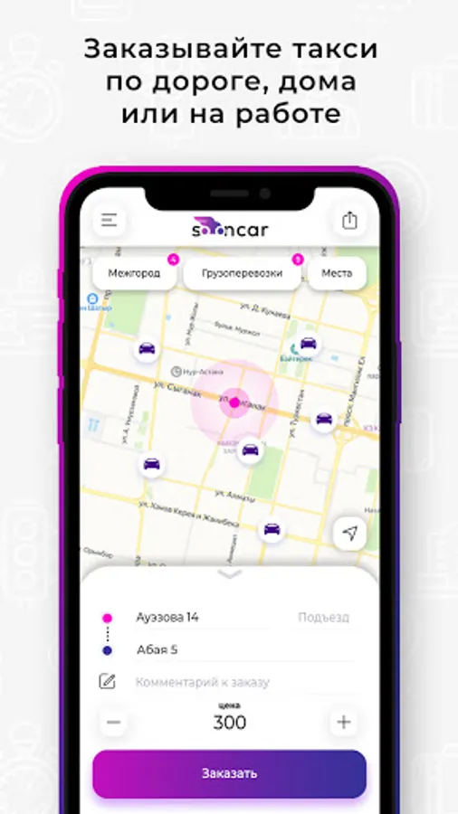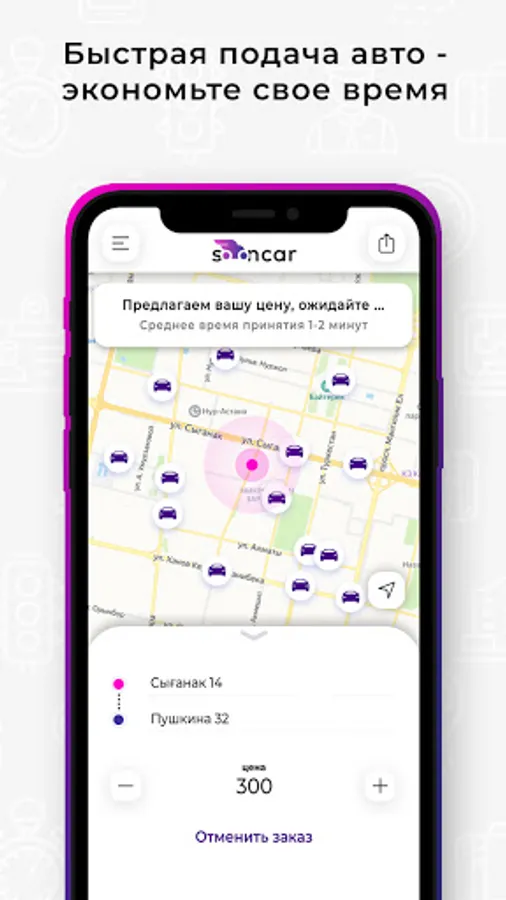 Sooncar is a taxi call service. After installation, it will be possible to call a taxi on your phone. It is enough to fill in point A, point B and select the price for the trip. When an interested driver accepts your order, you will be notified.