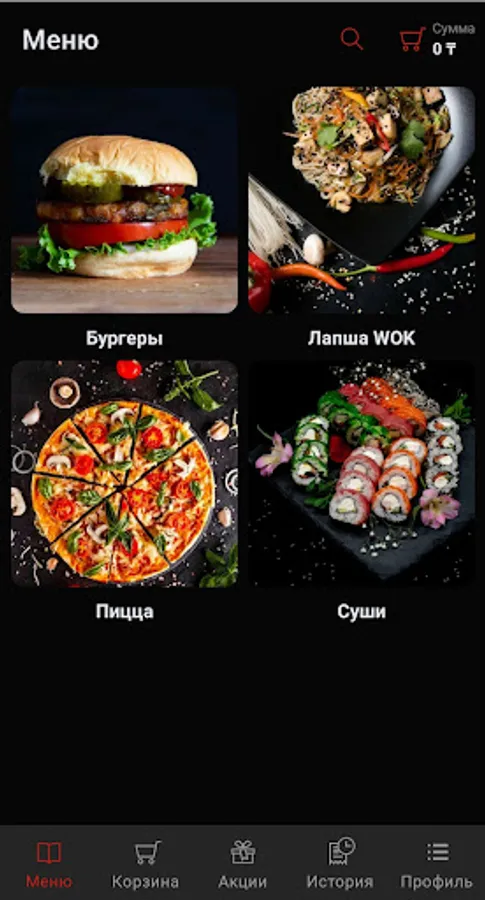 Delivery of pizza, sushi, rolls, chicken wings, stips, snacks, burgers, hot dogs, WOK noodles, drinks.