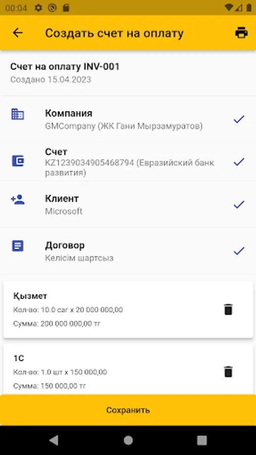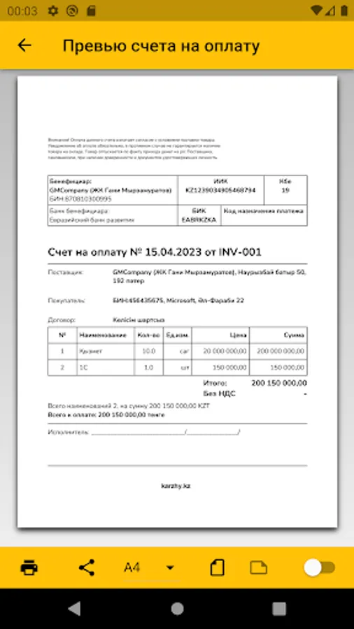 Karzhy - service for generating an invoice for payment Kazakhstan