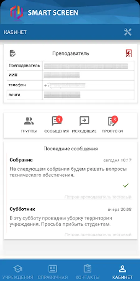 The Smart Screen application is designed for use by Students, Teachers, Curators, Heads of Departments, Administration of Educational Institutions.