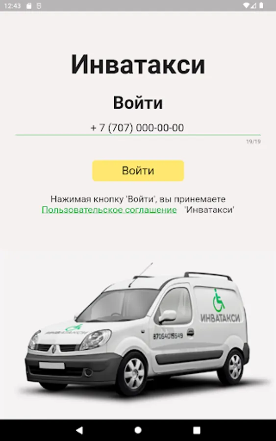 Invataxi is an application created for convenient ordering a taxi for people with disabilities in the city of Uralsk, West Kazakhstan region.