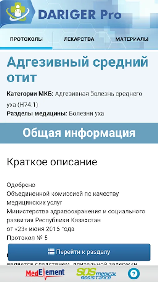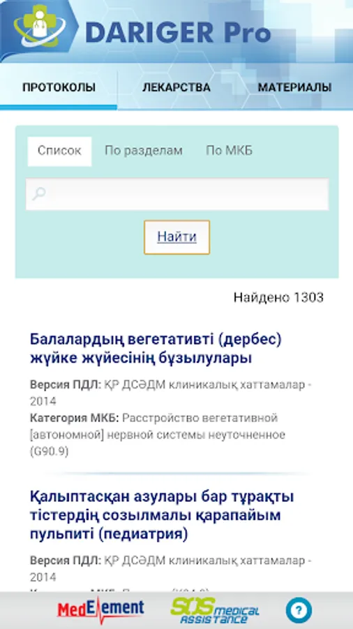 Mobile application "DARIGER PRO" contains a database of clinical diagnostic protocols and treatment of diseases, developed by the Ministry of Health and Social Development of the Republic of Kazakhstan.