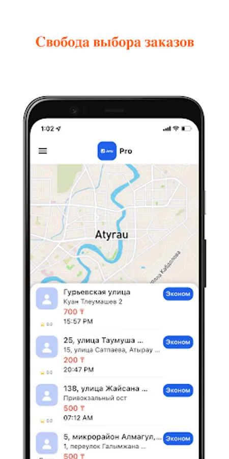 - You automatically receive orders from those users who are closest to you. Jetu Pro distributes orders so that there is less downtime and more earnings.