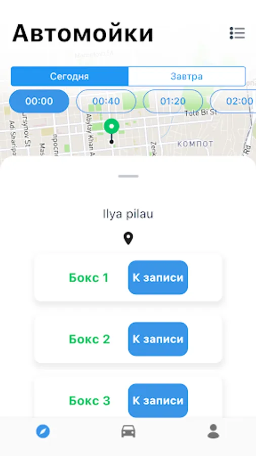 Each user who has his own car can download the application, select a car wash on the map, choose a convenient time for himself and sign up for a car wash.
