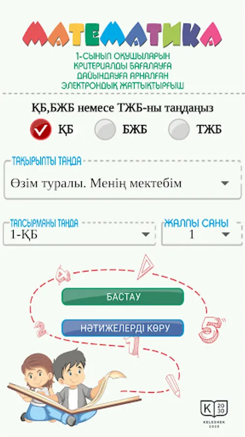 The purpose of the electronic tool is to help students prepare for criteria-based assessment. The various tasks presented in the e-trainer help to develop students' attention, imagination, perceptiveness, memory, develop cognitive and creative abilities of 1st grade students, develop special thinking skills. The trainer is recommended for use by parents, as well as primary school teachers, as an additional material for optional lessons and club activities to check and train the child's knowledge.