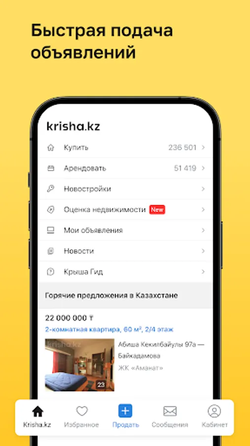 Krisha.kz (kz roof) is more than 300,000 current real estate ads in Kazakhstan. Here you will find apartments, houses, cottages, villas, as well as commercial real estate for every taste, from office to shop.