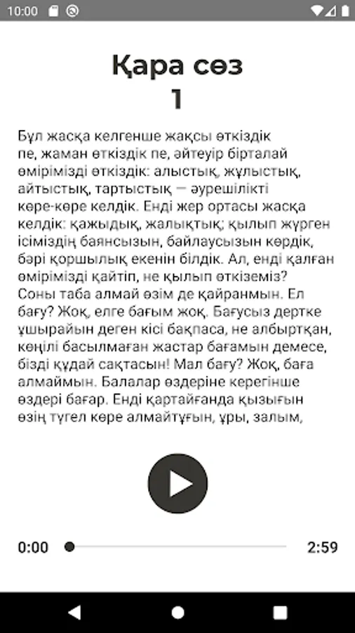 Қазақтың ақын жазушысы Абай Құнанбайұлының әйгілі қара сөздерінің аудио нұсқасы. Аудиолар офлайн жасайды. Сонымен қатар текст теріде бар.