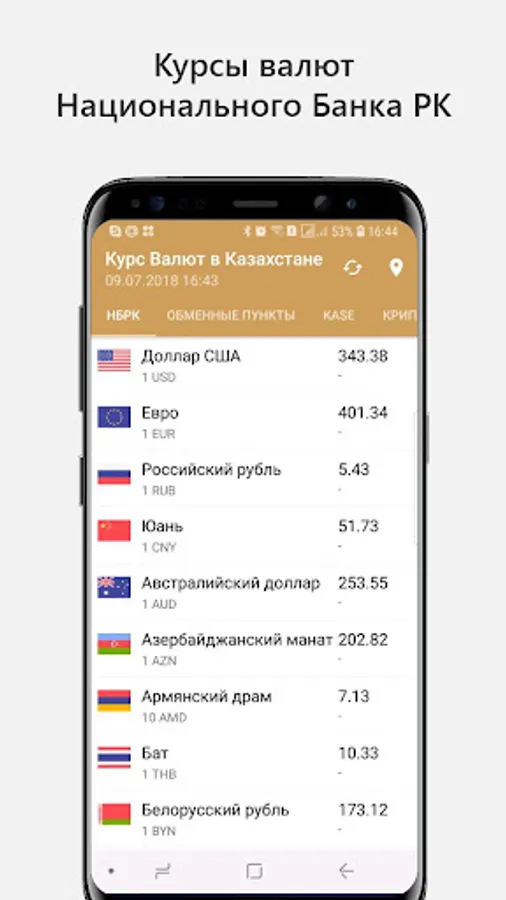 Official exchange rates of National Bank of the Republic of Kazakhstan.