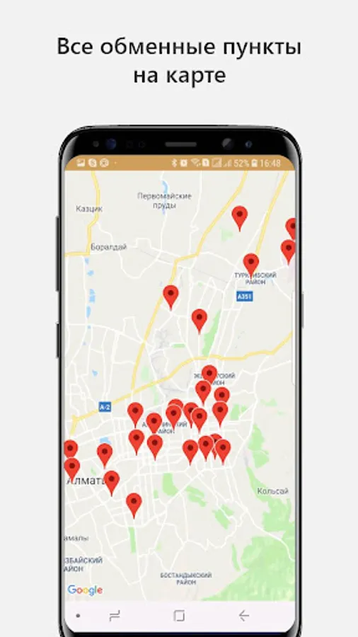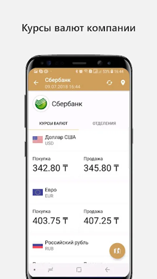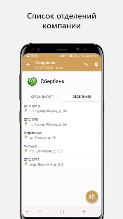 The contact details of all the departments of banks and exchange offices: phones, addresses, location on a map, schedule.