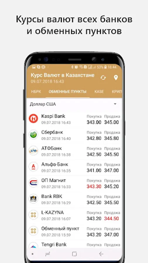 The most current retail currencies: US Dollar, Euro, Ruble, in all banks and exchange offices in Kazakhstan. It was convenient to the most profitable course - "the best rate" is highlighted in red. Exchange rates are available for the following cities: Aktau, Aktobe, Almaty, Astana, Atyrau, Balkhash, Zhezkazgan, Karaganda, Kokshetau, Kostanay, Kyzylorda, Pavlodar, Petropavlovsk, Semey, Taldykorgan, Taraz, Temirtau, Turkestan, Uralsk, Ust-Kamenogorsk, Shymkent , Ekibastuz.