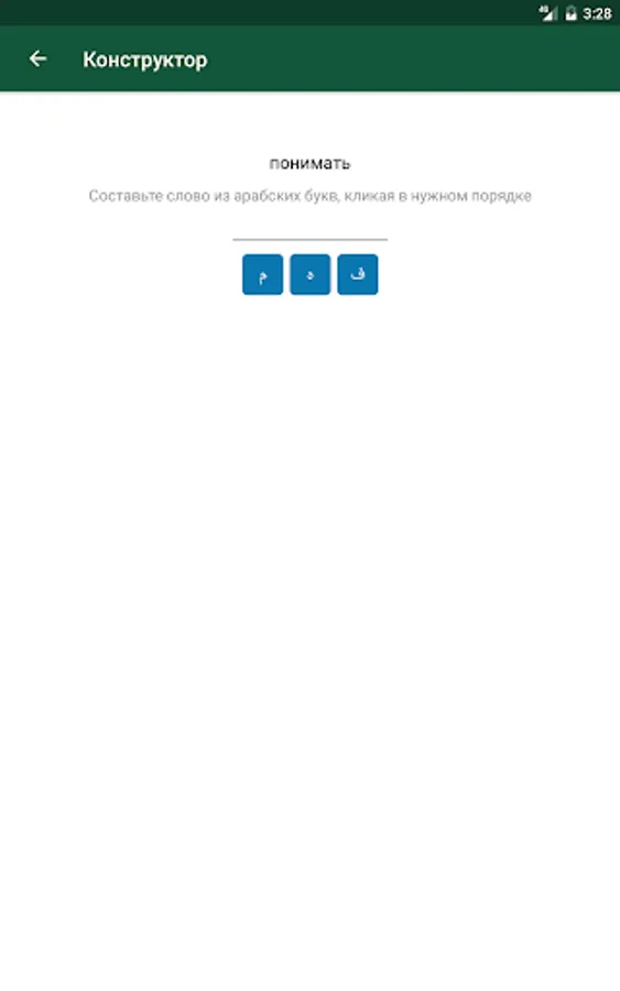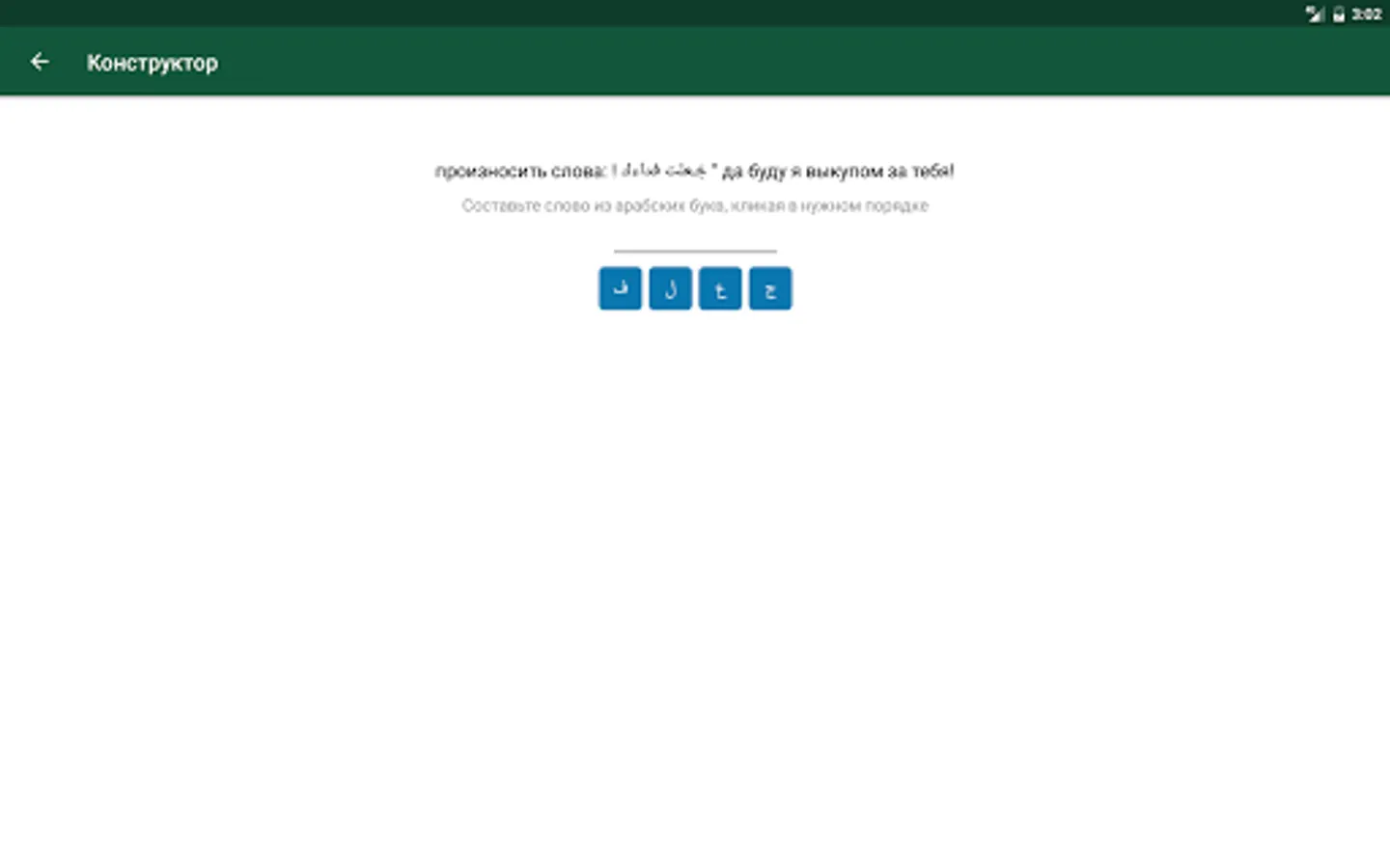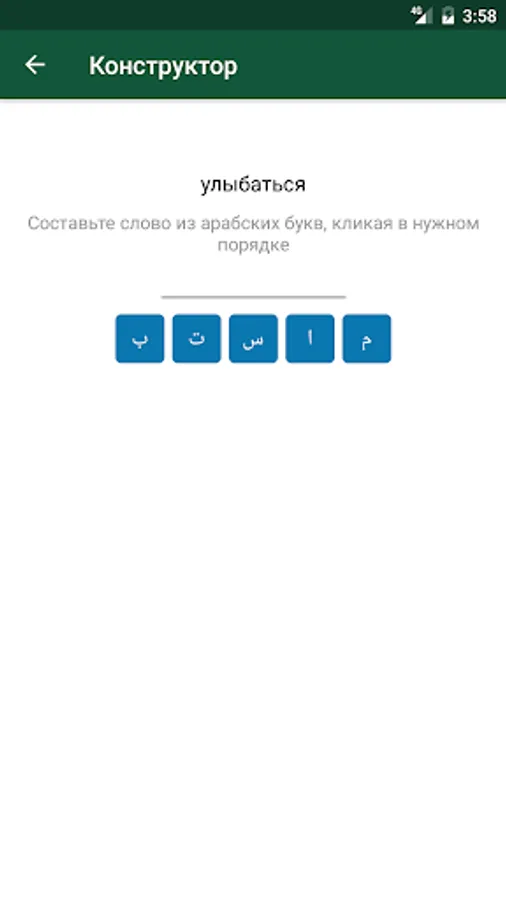 The training "Design" shows you the word in Russian. Your task is to determine what this word in Arabic and make it from the scattered letters.