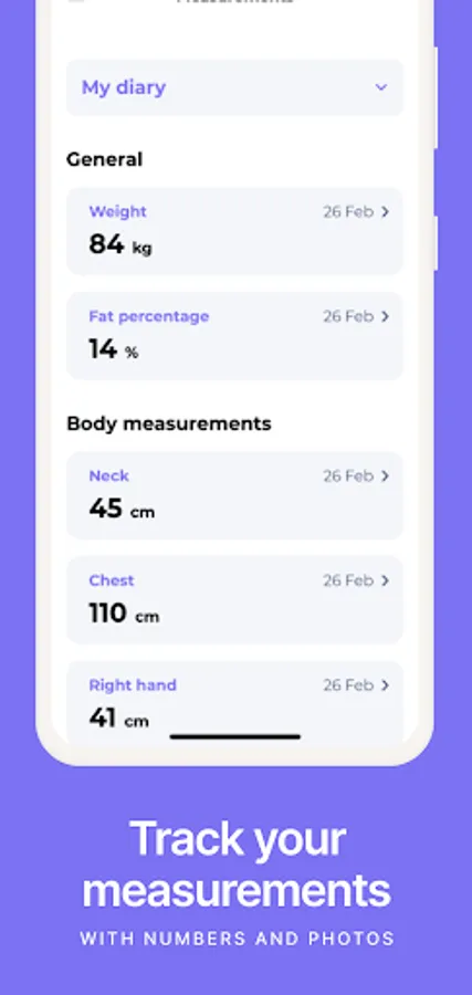 In addition to workout tracking, Fit Journal also allows you to track your body measurements. With our progress tracking feature, you can easily monitor your weight, body fat percentage, and other metrics to see how your body is changing over time. On top of that, Fit Journal has an integration with the HealthKit to display your step count.