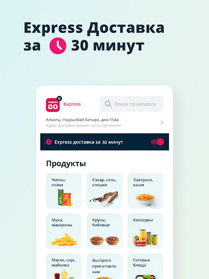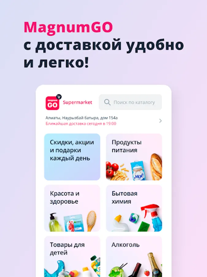 The MagnumGO online supermarket is a supermarket with the delivery of fresh products: home-baked bread and other home-produced products, dairy products, chicken, meat, vegetables, fruits, household chemicals in Almaty and Astana.