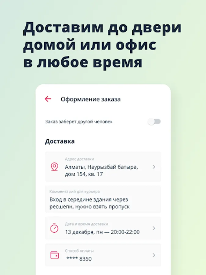 You choose a convenient delivery time and can no longer waste time going to stores, making purchases for a week, standing in traffic jams, queuing at the checkout, putting groceries in bags and carrying them home. We'll take care of this!