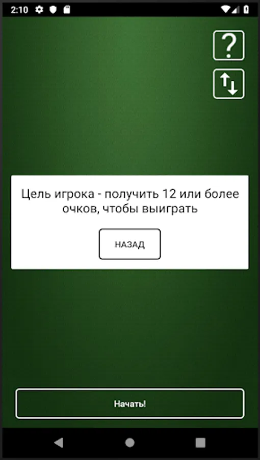 The goal of the game is to beat the opponent. To do this, you need to score more points on the dice. To start the game click on the cube, begin !!!