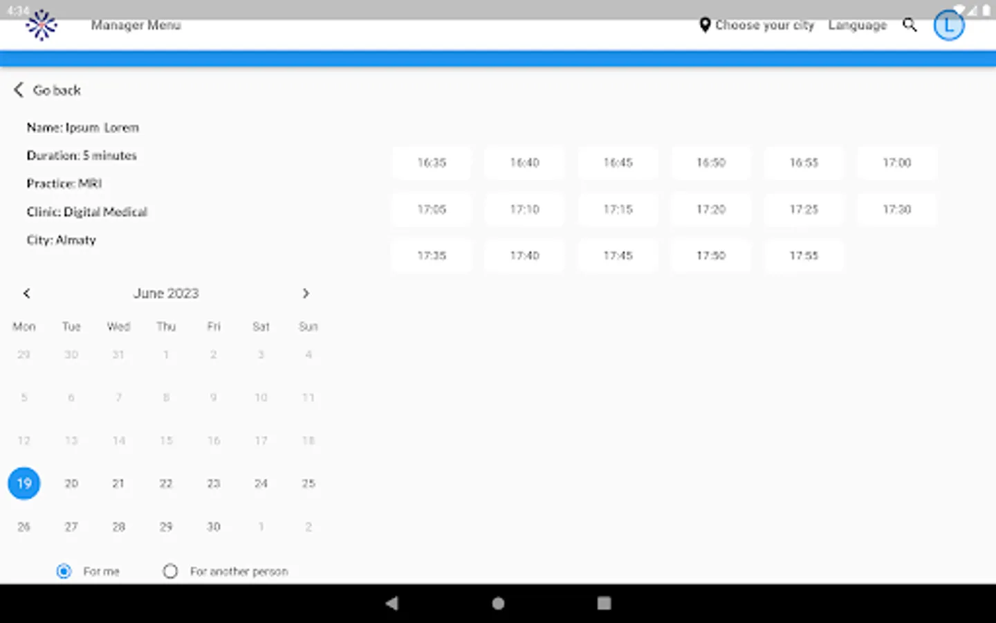 The mobile application serves as a convenient and user-friendly platform designed to streamline the process of scheduling and managing appointments with doctors and medical organizations. With this app, patients can easily book appointments, view available time slots, and select their preferred healthcare providers based on specialization, location, and availability.