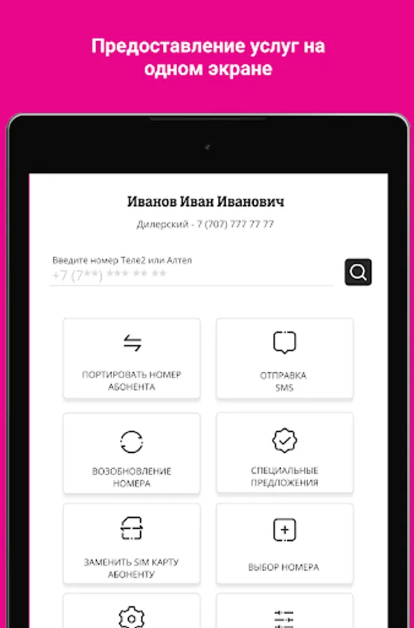 Dealer Pro application for sellers selling Tele2 and Altel products and providing service at points of sale.