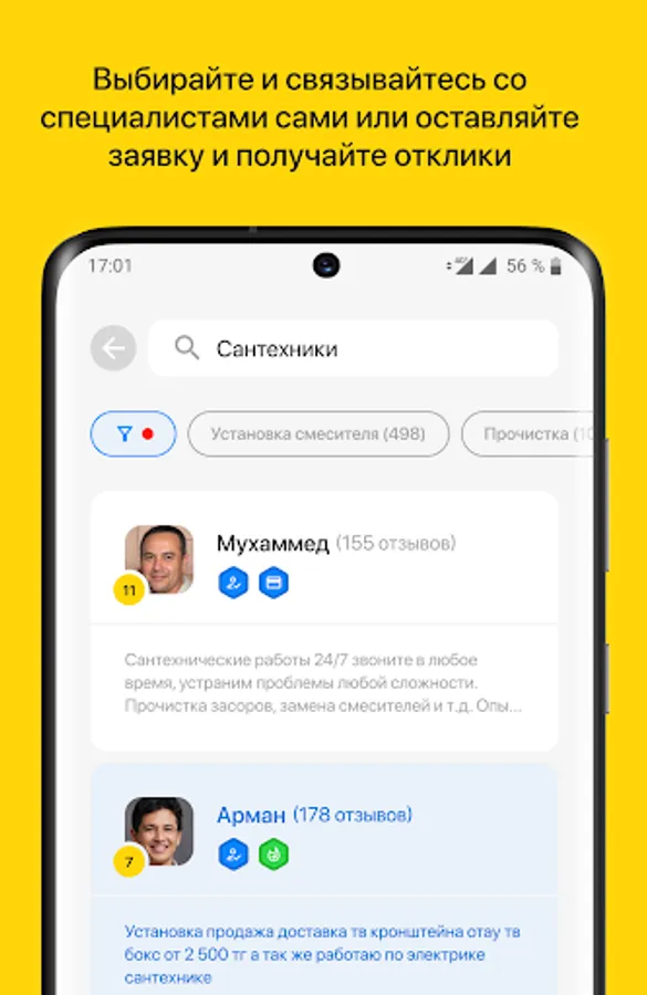 You do not need to search for masters on message boards, on the Internet or through acquaintances. Choose and contact specialists in the catalog or create an application and receive responses only from interested masters. Our free app will help you easily find a wizard according to your requirements and in just a few minutes.