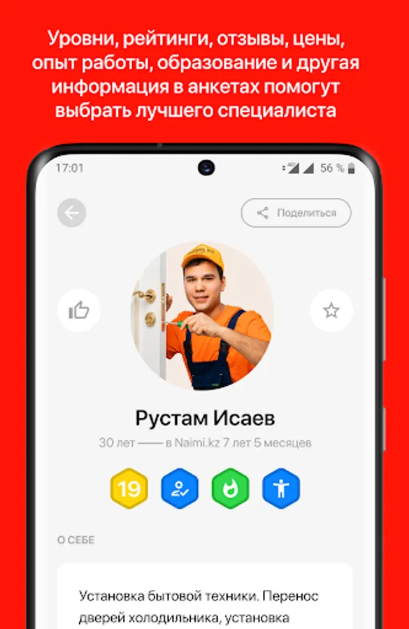 Naimi.kz is a free application for ordering personal services in all cities of Kazakhstan.
