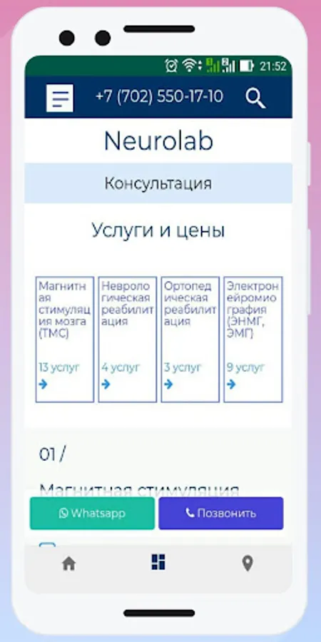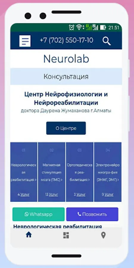 Neurolab Almaty Medical Center is equipped with high-tech equipment that gives good results in the treatment of severe diseases of the nervous system, such as Parkinson's disease, Alzheimer's disease, migraine, depression, phobias, insomnia, neuralgia, autism, delayed speech development, tinnitus, chronic headache , multiple sclerosis, speech and movement disorders after a stroke and others. In addition, the center provides rehabilitation after a stroke, after brain injuries, spinal cord injuries, nerve injuries, as well as rehabilitation after amputation and joint replacement.