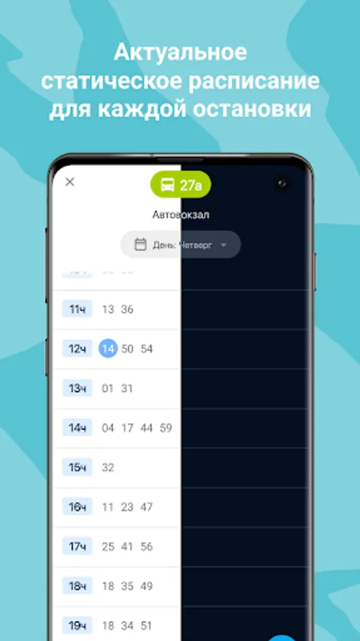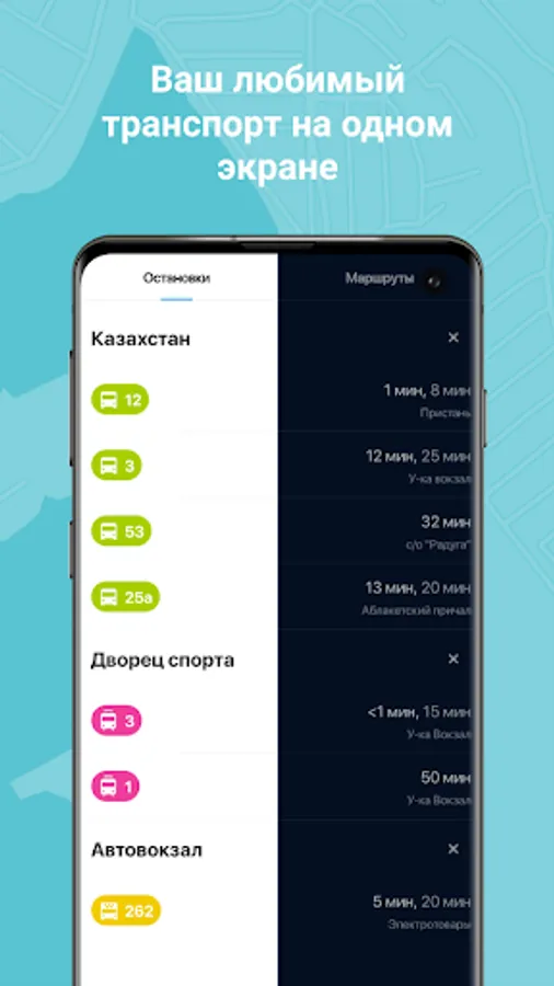 All transport in your city is displayed on the map in real time. Watch your bus, tram or minibus. Now you know exactly where your bus is.