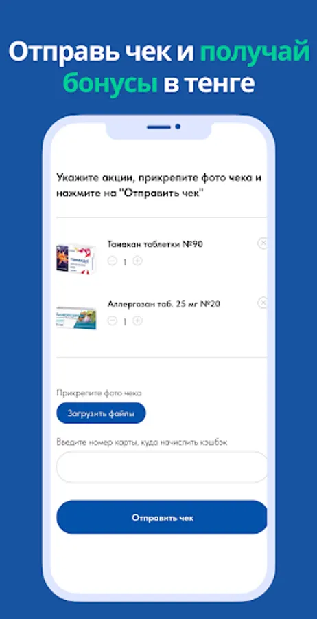 • Buy medicines at the pharmacy and send a photo of the receipt in the application;