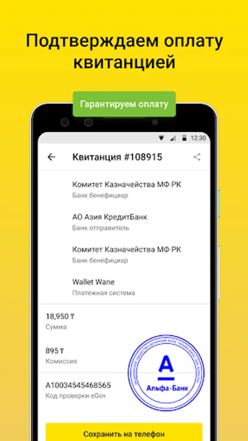 After payment, you will receive a payment receipt that meets all the requirements of the legislation of the Republic of Kazakhstan. If necessary, you can print it and present it as a bank document. All receipts are in the “Payments” section.