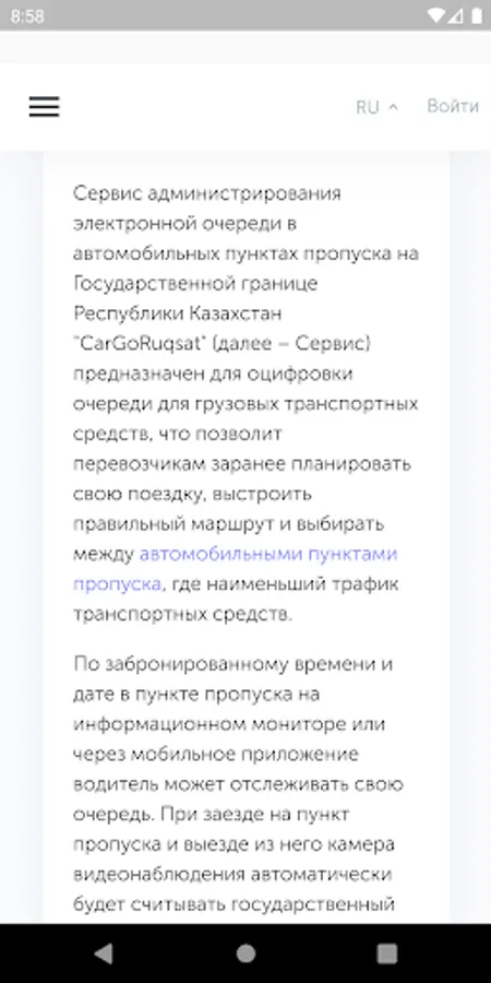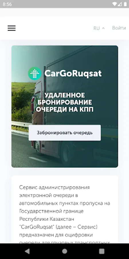 Electronic queue administration service at automobile checkpoints on the State Border of the Republic of Kazakhstan