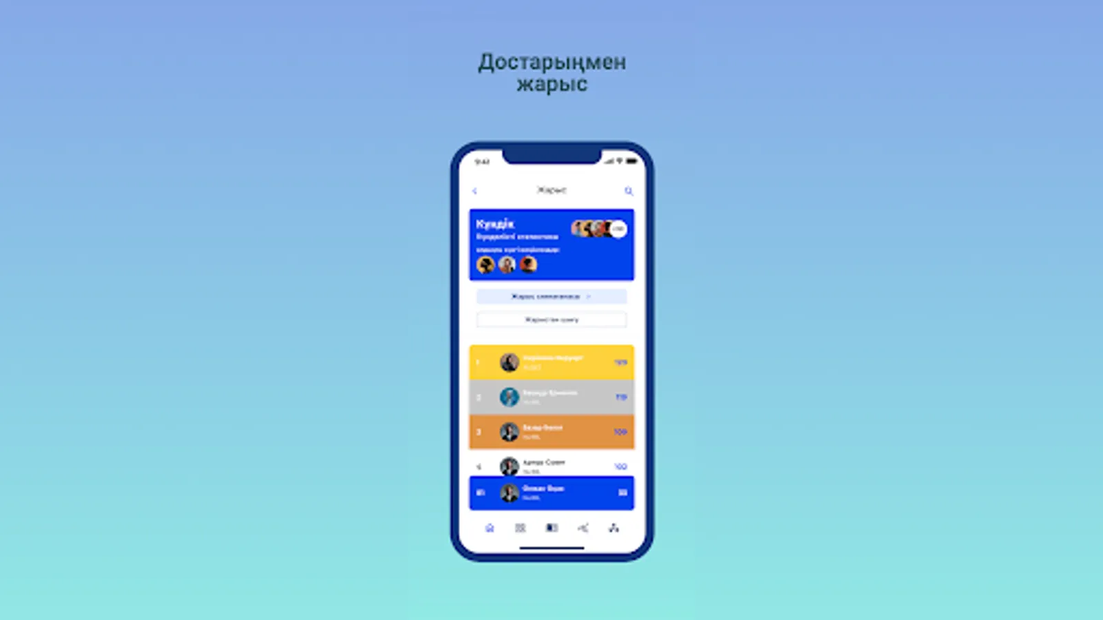 • Сыныптастарыңызбен қатар, тіркелген мектептер арасындағы деңгейлерді анықтай аласыз.