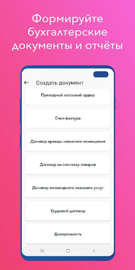 form contracts, powers of attorney, invoices, acts of work performed, payment order, receipt order;