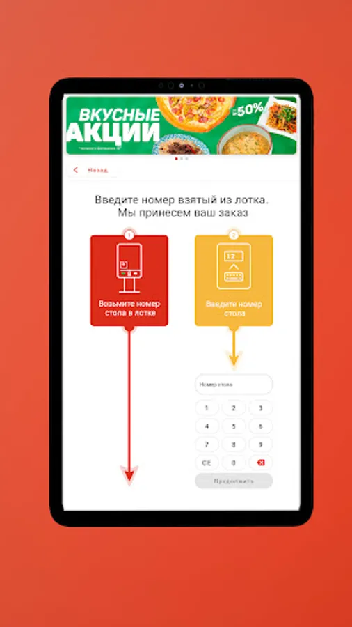Don't stand at the checkout! Come to the kiosk or take a tablet. We will bring your order to you