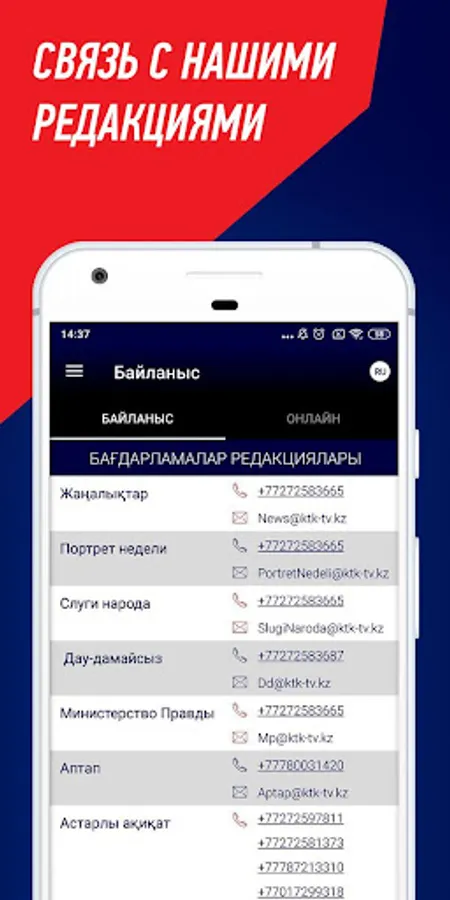 We accept all feedback and suggestions on internet@ktk-tv.kz