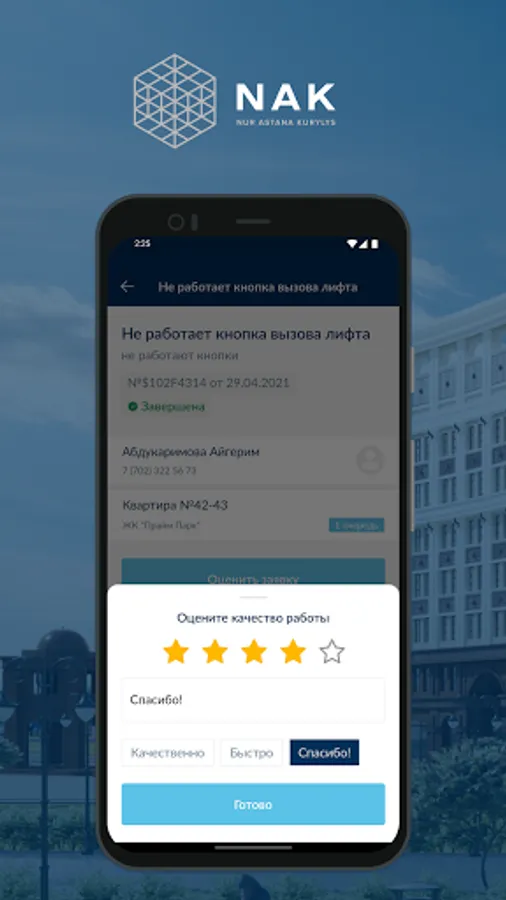 Mobile application "NAK Service" is your personal, modern and convenient tool for managing your property. Our application will allow you to easily control all issues around the house from your mobile phone.