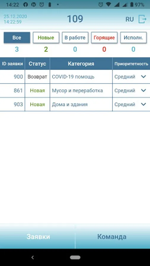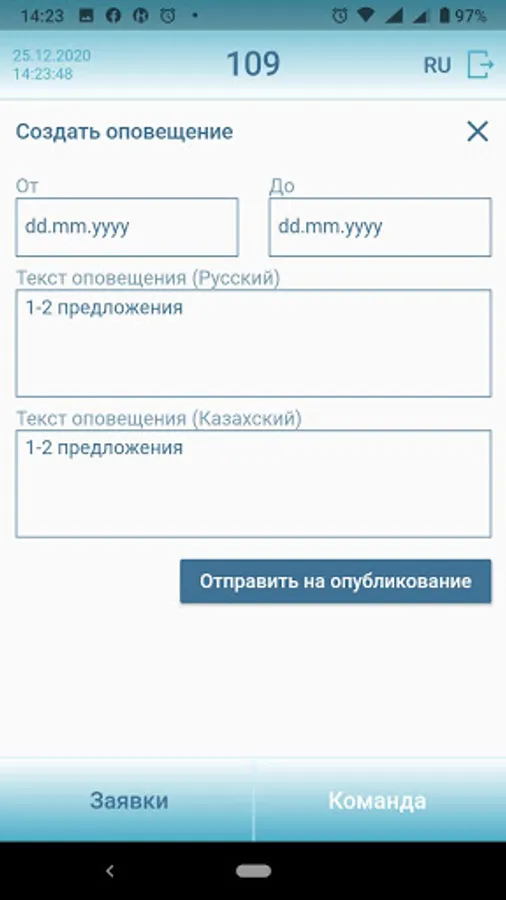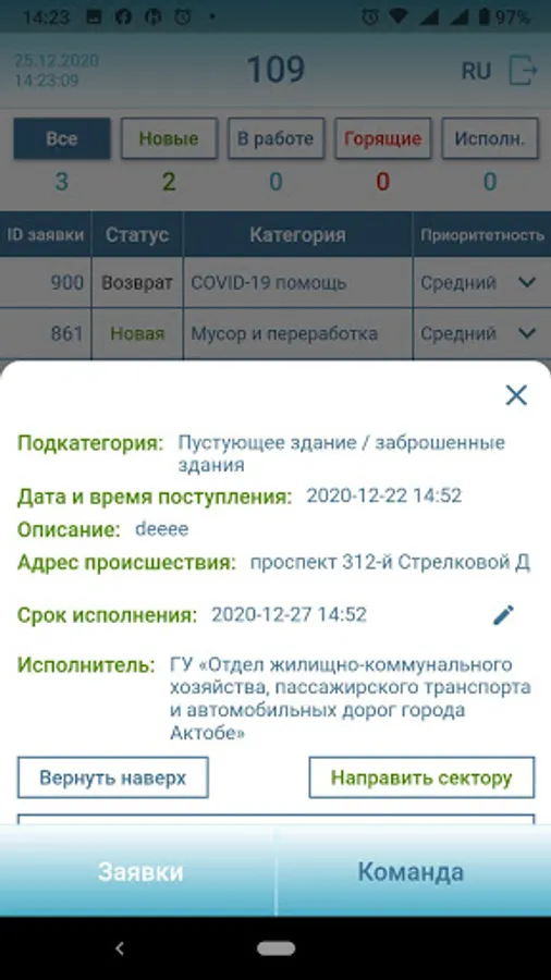 "109 Aqtóbe Service" is designed to provide effective information support for the management of applications / appeals from citizens, as well as management of the process of interaction with operators and 109 operators and dispatchers of the state administration / sectors of the state administration.