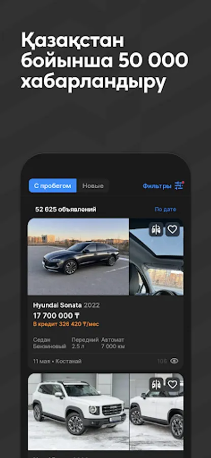 More than 70,000 ads of cars with mileage in Kazakhstan are available in the catalog, which can be easily filtered by brand, year of manufacture, price and other parameters. The key characteristics of each car are indicated on the card, which may be needed in the interest of making a decision to buy a car.