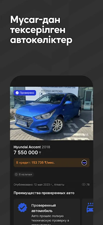 Download the Mycar.kz application - a smart assistant for car sales, search, purchase and maintenance!