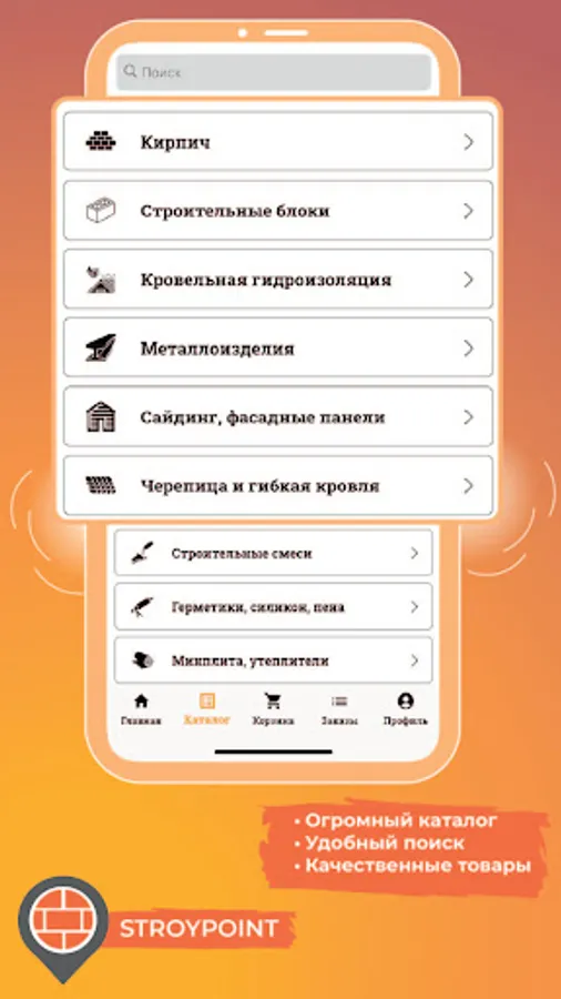 Our application will help you to order the necessary building materials even from a mobile application. We have over 2,000 products in our range, which are always in stock.