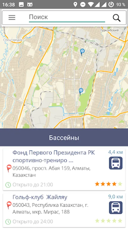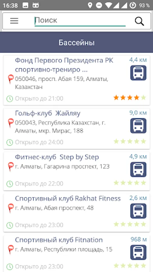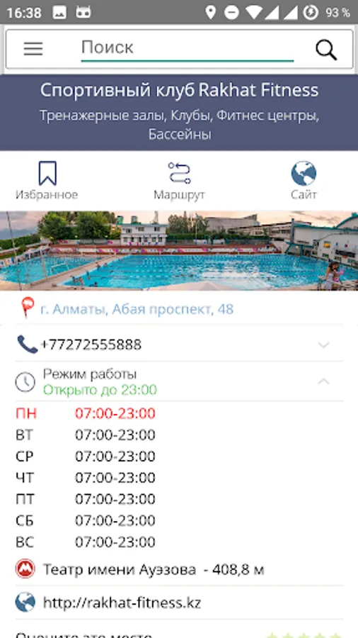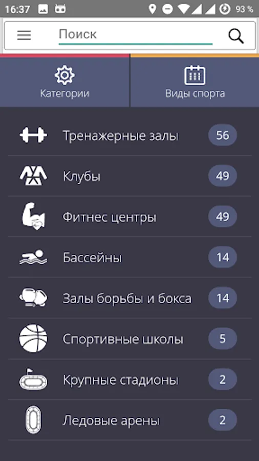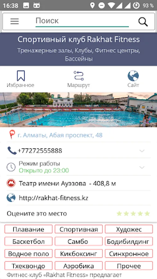 The application supports the work without the Internet. It will help with the choice of sports establishment, show reviews, hours, contact information.