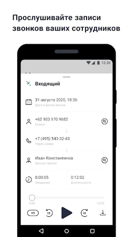 - view the company's call history and listen to a recording of any conversation (playback speed can be increased to listen to more conversations in less time),