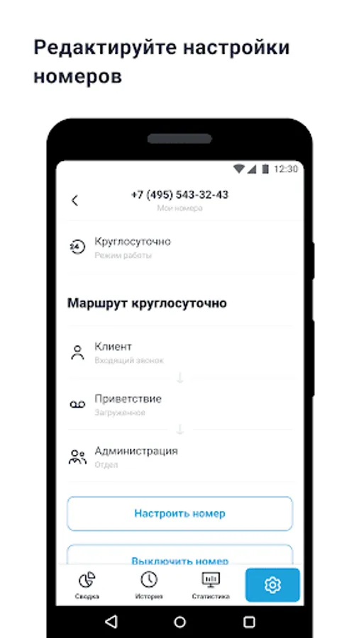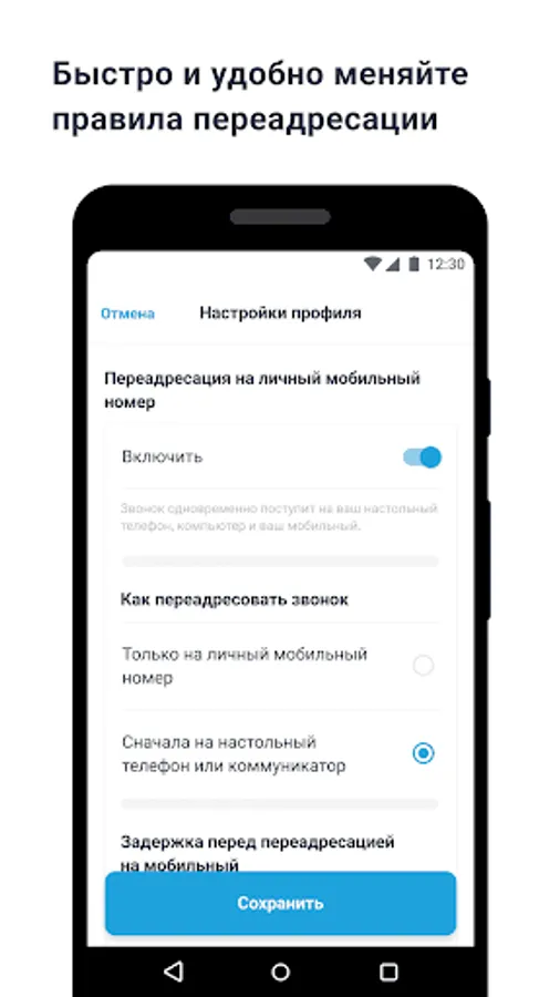 The mobile application allows you to work with the Virtual PBX right on your smartphone - even outside the office you get access to the main functions of the PBX.