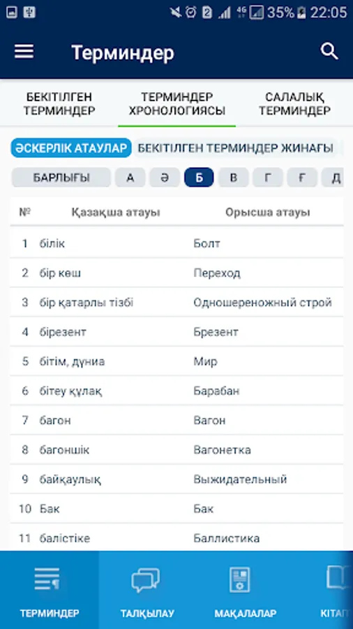 Saytқa kіrushіler bekіtіlgen terminder қoldanystaғy termindermen tanysyp varied, ones қyzmetіne қatysty қoldana Aladov, ұtymdy engіzіlgen terminderdі saralap, Zhana terminderdі saraptauғa mүmkіndіk tuady.Salalyқ terminderdі қalyptastyru changed standarttau, terminderdі audaru term tүzudegі ұstanymdar turaly ғylymi zhane ғylymi-kөpshіlіk, anyқtamalyқ әdebietter varied terminology salasynda zharyқ kөrgen eңbekter changed sөzdіktermen tanysa Aladov.