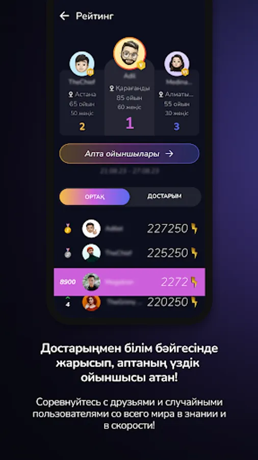 Welcome to AQYL BATTLE, the most popular intellectual game in the country, played by almost a million Kazakhstanis! Are you ready to test your knowledge and compete with others?