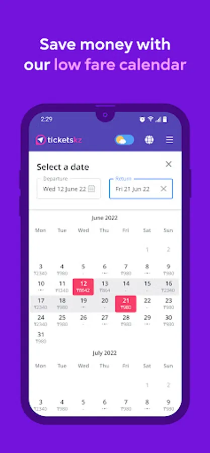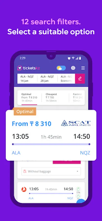 Tickets.kz is a mobile booking app designed to help you effectively search for train tickets and cheap flights for your holidays at bargain prices. It's quick, simple, and easy. Never again will you have to let great online deals pass you by unnoticed!
